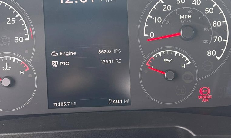 2024 Kenworth T480 Chassis, Approximately 11,205 Miles, 862 Engine Hours, and 135 PTO Hours, Paccar PX-9 (350 HP) Diesel Engine, Allison 3000 RDS 6-speed Automatic Transmission, Cruise Control, Power Windows, Locks, and Mirrors, Heated Mirrors, Anti-Lock Braking System (ABS), VGT Exhaust Brake, Diff Locks, Wheelbase 230″, 4.88 Rear Axle Ratio, 50-Gallon Fuel Tank, ALCOA Polished Aluminum Wheels, Taper Leaf Springs 20,000# Front Suspension, Peterbilt Air Trac 40,000# Rear Suspensions, 60,000 GVWR. VIN 2NK5LJOX4RM357664.