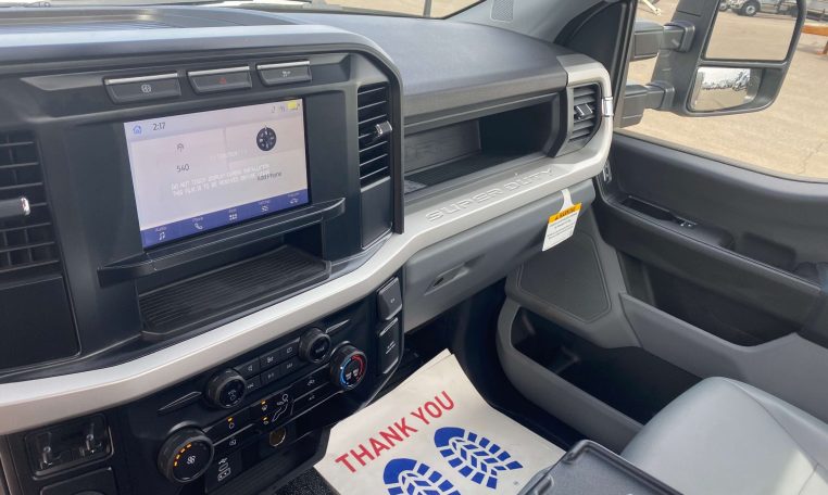 2025 Ford F-550 XL 4X2 SD Regular Cab Chassis, Power Stroke 6.7L Turbo (330HP @ 2200 PRM) V-8 Diesel Engine, Engine Exhaust Braking System, TorqShift 10-Speed Automatic Transmission, 40-Gallon Fuel Tank w/ 7.20 DEF Tank, 4.30 Rear Axle Ratio, Power Group (Windows, Locks, Mirrors), HD Vinyl 40/20/24 Split Bench Seat (Medium Slate Gray), XL Chrome Package w/ Chrome Grill and Bumper, 169″ Wheelbase, Cab to Axle 84″, Engine Block Heater, Snow Plow Prep Package, High Capacity Trailer Tow Package, Trailer Brake Control, SYNC 4 Communications & Entertainment System w/ 8″ Primary LCD Display, AM/FM Stereo w/ MP3 Player, Platform Running Boards, Oxford White, 4-Wheel Disc Brakes w/ Anti-Lock Brakes, Kelderman Adjustable Air Lift Suspension, 7,000# Fronts and 14,706# Rear Axles, 19,500 GVWR. Under CDL Truck.