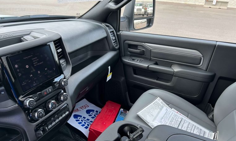 2025 RAM 5500 HD 4X4 Diesel Truck, Cummins 6.7L I-6 (360HP) Diesel Engine, 8-Speed Automatic Transmission (DFM), A/C, Cruise Control, Power Group (Windows, Locks, and Mirrors), Cold Weather Group, Uconnect 5 Radio w/ 8.4″ Display, Heated Mirrors, Factory Black Mopar Running Boards, Engine Block Heater, 168.5″ Wheelbase, 4-Wheel ABS Brake System, ParkView Rear Backup Camera Trailer Tow Package w/ Electric Trailer Brake Control, Snow Plow Prep, 52-Gallon Fuel Tank, 4.44 Rear Axle Ratio, 19,500 GVWR, VIN 3C7WRNBL2SG544652. Under CDL Truck.